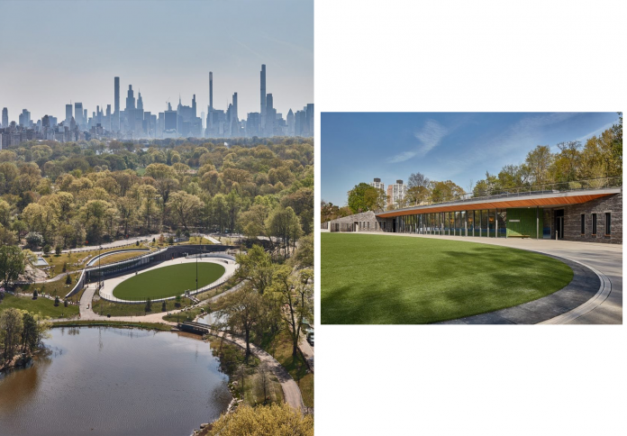 After decades of fragmentation, the northern end of Central Park has undergone a profound transformation with the unveiling of the Davis Center at the Harlem Meer. Designed as a seamless collaboration between Susan T Rodriguez | Architecture • Design, Mitchell Giurgola Architects, and the Central Park Conservancy, this $160 million project revitalizes the former Lasker Rink and Pool site, creating an eight-acre “ultimate fusion of landscape and architecture.” By restoring the park’s natural watercourse and embedding the new recreational facility into the steep slope, the design serves as a vital community hub—offering seasonal activities from ice skating to swimming—while upholding the fundamental purpose of Central Park: to be a restorative, natural refuge for all New Yorkers, particularly those in the adjacent Harlem community.
