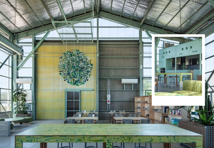 To transform the dark, enclosed factory into a bright, welcoming public space, the studio executed a dramatic material swap on the café side. The existing heavy metal walls were replaced with corrugated polycarbonate panels, allowing natural light to flood the interior. This choice immediately brightened the space and provided a stark visual contrast to the brewery side, which retained the original slate roof and metal cladding to ensure necessary shade and climate control for its processes.