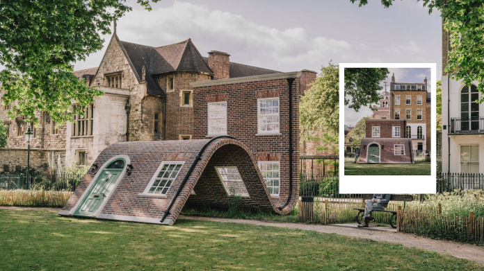 At the heart of A Week at the Knees is a reconfiguration of a classic Georgian facade, complete with bending windows and brickwork, creating the illusion that the building itself is taking a seat. Located in London’s Charterhouse Square, the installation measures 5.5 metres high and 13.5 metres long, making it an impressive presence within the historic setting. The sculpture was crafted using 320 metres of steel and 7,000 brick slips, meticulously glued onto a steel skeleton to achieve its fluid, rippling form.