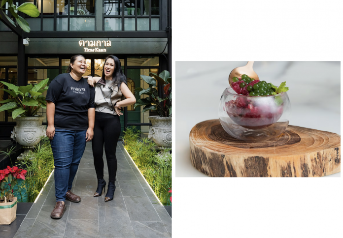 The second and more creative step involves introducing a contemporary twist to the authentic base. This is where Chef Pornprom’s expertise and experience—which includes working in prestigious fine-dining kitchens—comes into play. She uses modern techniques, refined ingredients, and precise layering of textures to elevate the dish, ensuring it retains the spirit and core flavor of the past while appealing to modern tastes. The original cooking methods and fundamental flavors are retained, but elements are introduced to modernize the dishes, giving them the complexity, vibrance, and finesse expected of a high-end degustation experience. This dual-sided approach—loyalty to the past coupled with innovation for the present—is the core engine driving Time Kaan’s unique concept.
