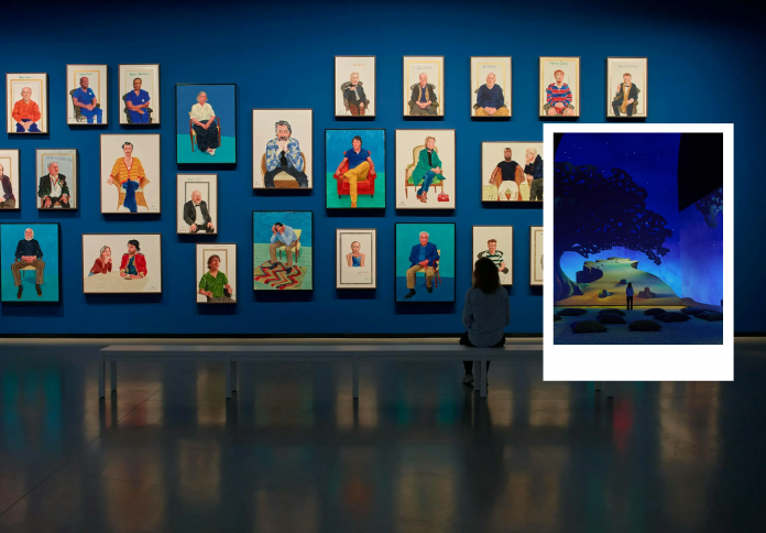 Triển lãm được giám tuyển bởi chính Hockney cùng cộng sự thân tín, tạo nên một cấu trúc mạch lạc và giàu tầng nghĩa. Người xem lần lượt trải qua từng giai đoạn sáng tạo của ông: từ các bức chân dung gia đình đầu sự nghiệp, loạt tranh hồ bơi mang tính biểu tượng, đến chuỗi tác phẩm kỹ thuật số sống động được sáng tác gần đây. Qua từng phòng tranh, một thế giới nội tâm hiện lên – nơi thiên nhiên, âm nhạc, con người và ánh sáng giao hòa trong một nhịp điệu rất riêng.
