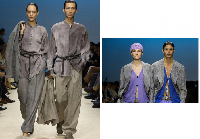 The tailoring was loose without being sloppy. The materials were luxurious without being ostentatious. Even the accessories—light scarves, woven belts, minimalist sandals—fit seamlessly into the world he built for this season. It was a collection that knew itself deeply and had no interest in trend-chasing. Instead, it invited wearers to slow down, to invest in craft, and to inhabit their clothing with ease. Armani, in many ways, is a master of restraint—not just in color or cut, but in ethos. And this season, even in his physical absence, that restraint felt like the show’s most powerful statement.