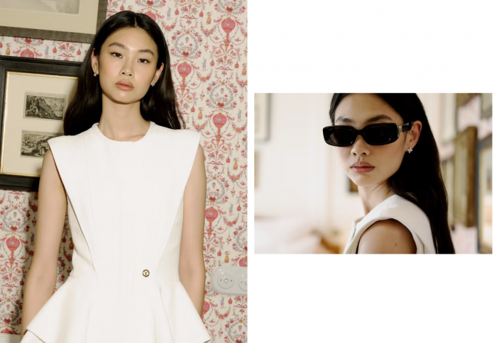 For the Cruise 2026 show, Hoyeon embraced the natural beauty and atmosphere of Provence. “Andrew [Mukamal] and I wanted to reflect the elegance and airiness of the South of France,” she says of her stylist. The result was a tailored white peplum top paired with matching capri pants—sophisticated, light, and quietly commanding. “What I love most is how the modern tailoring pairs perfectly with soft, comfortable fabrics. It feels polished yet relaxed, which really fits the spirit of the Cruise show,” she says.