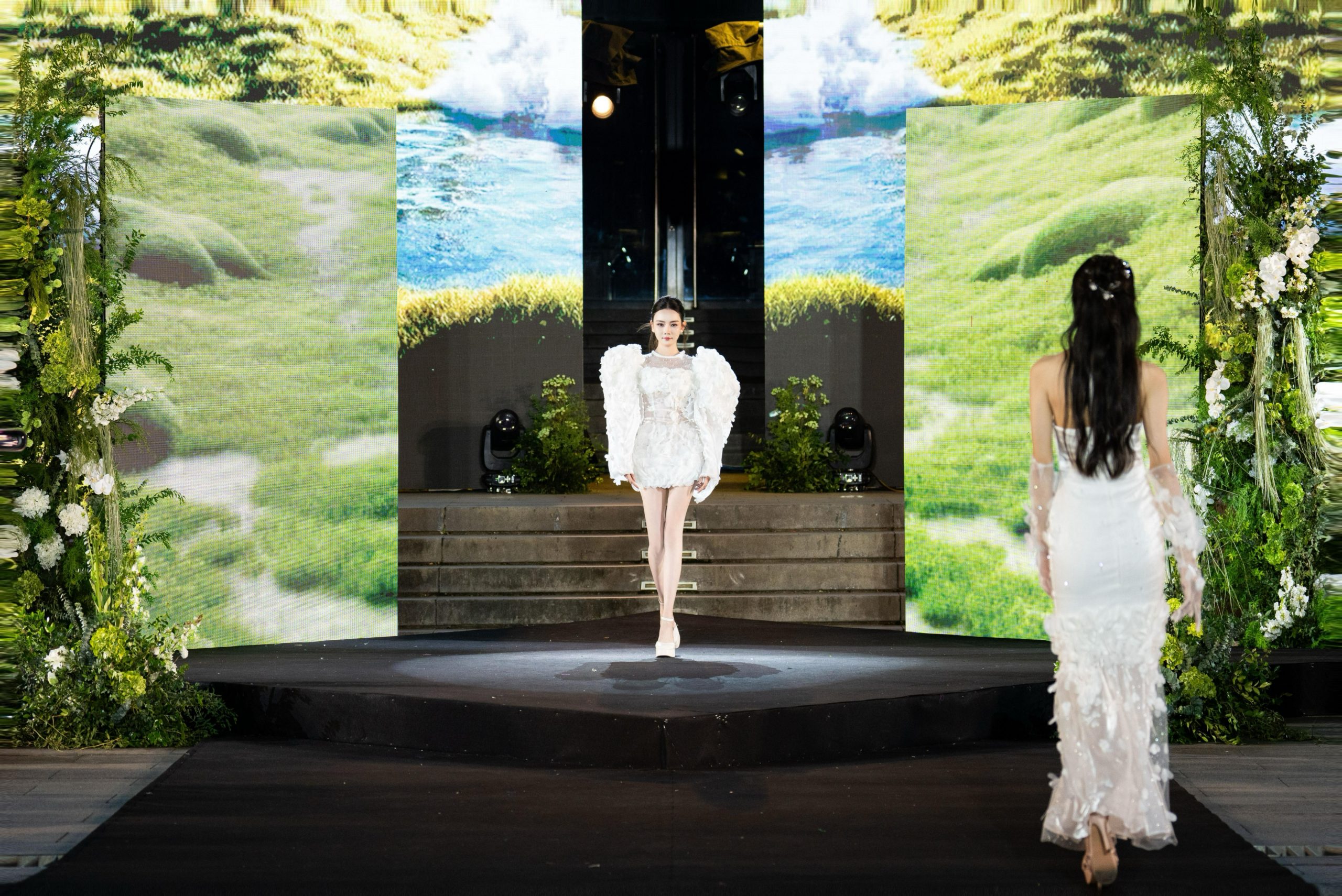 Bộ vedette do Tú Quyên trình diễn đã khắc họa trọn vẹn tinh thần của BST: sự giao thoa giữa vẻ đẹp thuần khiết và sự sang trọng, nơi từng đường nét được xử lý chỉn chu, từng chi tiết đính kết tạo điểm nhấn, từng phom dáng nâng niu đường cong cơ thể người mặc. Màu trắng tinh khôi, kết hợp cùng ánh sáng sân khấu, đưa “White Wisteria” trở thành tâm điểm, khiến người xem cảm nhận được hơi thở hiện đại hòa cùng giá trị thủ công tinh xảo.