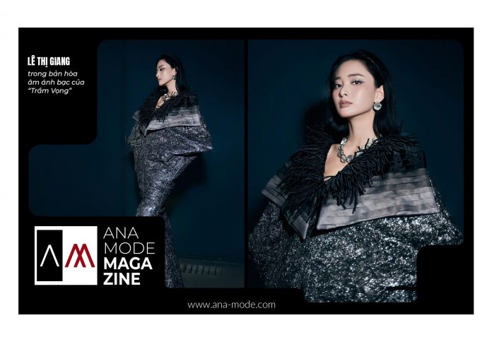 Thiết kế mà Giang khoác lên mình thể hiện rõ cấu trúc phom dáng bó sát đa tầng, chi tiết xếp nếp tạo thành những khối hình học ấn tượng. Các lớp vải ánh bạc như những mảnh gương phản chiếu cảm xúc, đồng thời giúp người mặc giữ được vẻ sang trọng, kiêu hãnh trong từng bước di chuyển. Điểm nhấn nằm ở phần cầu vai tua rua đen và đường xẻ táo bạo, tạo sự tương phản giữa mạnh mẽ và mềm mại, giữa phóng khoáng và kiểm soát, giữa ánh sáng và khoảng lặng – tái hiện trọn vẹn tinh thần “Trầm Vọng”.