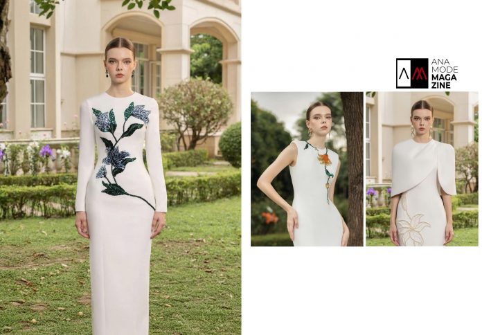 Trong “Lily in the Garden”, hoa huệ không chỉ là họa tiết trang trí. Đó là linh hồn, là điểm tựa cho ý tưởng thiết kế, nơi mỗi chiếc váy đều thể hiện một sắc thái khác nhau của sự nữ tính. Có thiết kế dịu dàng như một sáng tinh mơ, có thiết kế lại kiêu kỳ như ánh nắng trưa mùa hạ. Nhưng dù ở góc độ nào, tất cả đều xoay quanh chủ thể chính: người phụ nữ biết mình là ai và luôn nở rộ theo cách riêng.