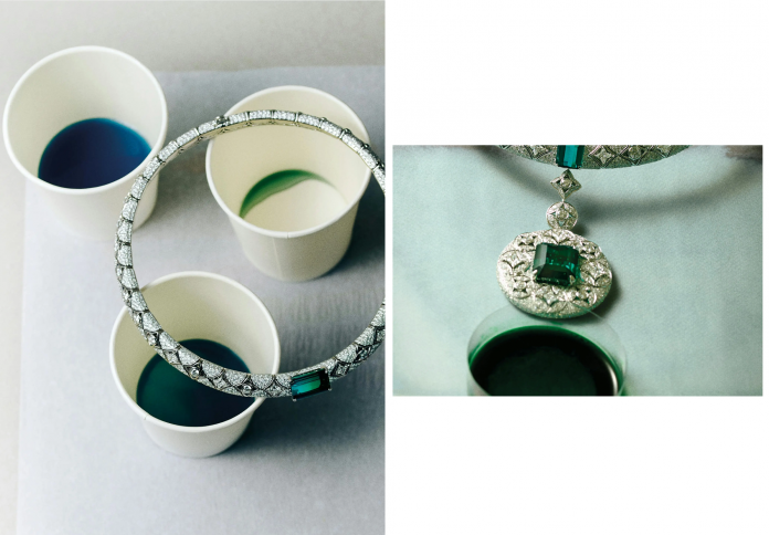 Take, for example, a necklace featuring indicolite tourmaline—a deep blue-green gemstone rarely seen at this level of refinement—balanced with rows of brilliant-cut diamonds that evoke waves on the ocean. Or a bracelet in which the tourmaline’s transition of color seems to echo the slow fade of a summer dusk. These pieces do not simply dazzle; they tell stories. They transport.