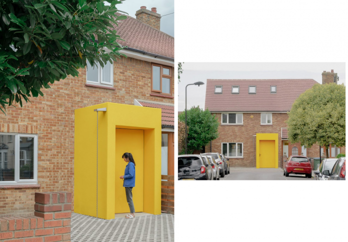 A surefire way to boost kerb appeal is through the confident application of color and geometric creativity. At CLT House in the UK, Unknown Works embraced a banana-yellow render that completely blankets the oversized entrance, ensuring the pivoting front door is visible from a distance. The choice of a vibrant, saturated hue injects immediate character into the structure, moving far beyond typical muted residential palettes.
