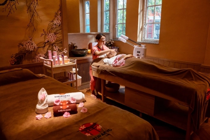 Nếu phòng nghỉ là nơi tái tạo giấc ngủ, thì spa là nơi chữa lành sự mỏi mệt của tâm trí. Sakurakyo Spa nổi bật với không gian thư giãn tĩnh lặng, ánh sáng dịu nhẹ và hương thơm dịu dàng từ các loại tinh dầu Nhật Bản. Tại đây, các liệu trình chăm sóc da được thiết kế riêng biệt cho từng loại cơ địa, sử dụng sản phẩm từ thương hiệu cao cấp Sakura – Sakurahyme với bảng thành phần thuần khiết, chuyên biệt cho làn da châu Á.