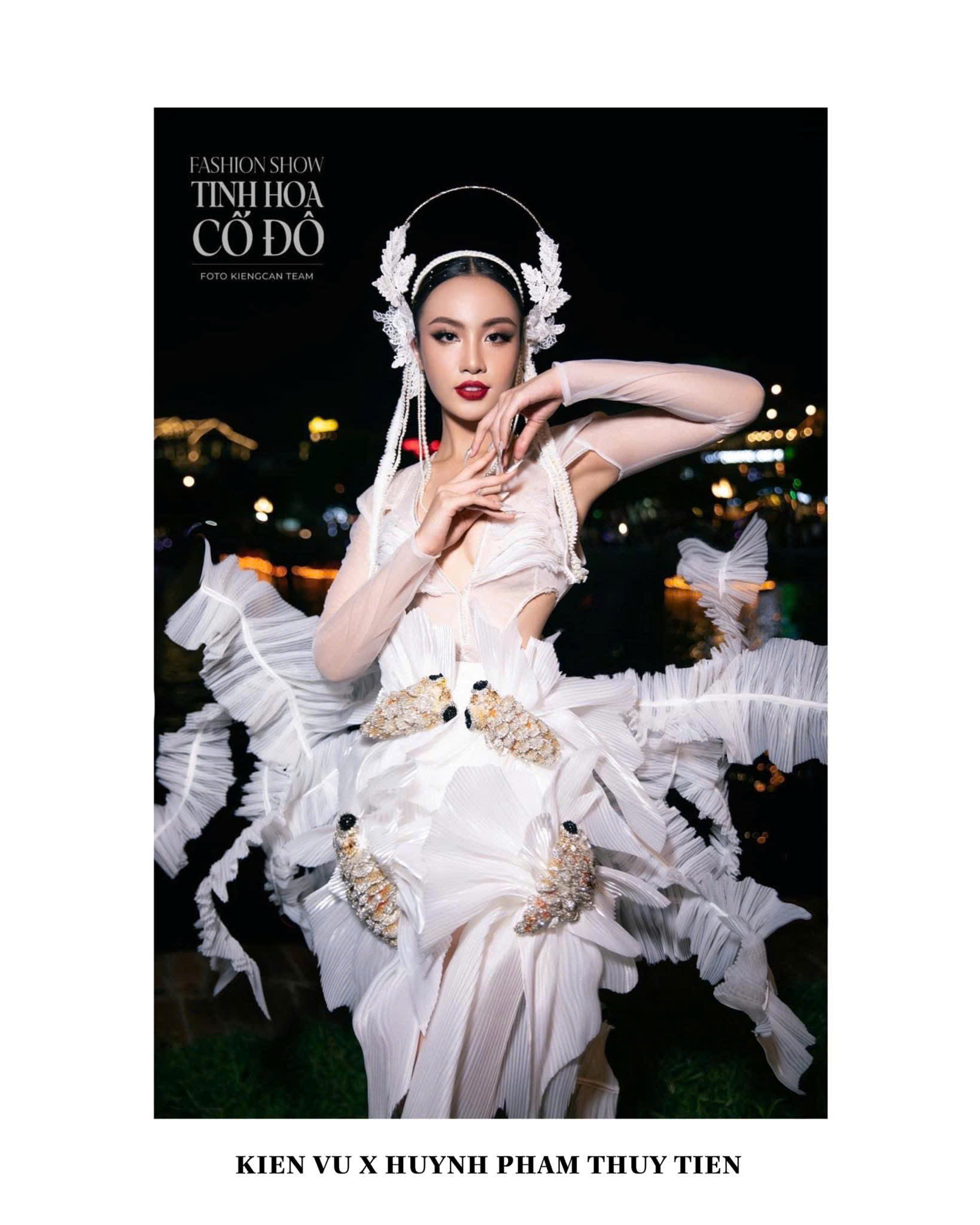 Kiên Vũ tạo nên sự đối thoại thú vị giữa đường cắt tailoring đầy kỷ luật và bề mặt chất liệu giàu xúc cảm. Những nếp gấp dập ly, quilting phẳng, nổi hay đường thêu tiết chế đều được sắp đặt như giai điệu, tạo nên nhịp chuyển động mềm mại mà vẫn sang trọng. Bộ sưu tập vừa giữ sự chuẩn mực của kỹ thuật, vừa truyền tải chất thơ của cảm xúc.