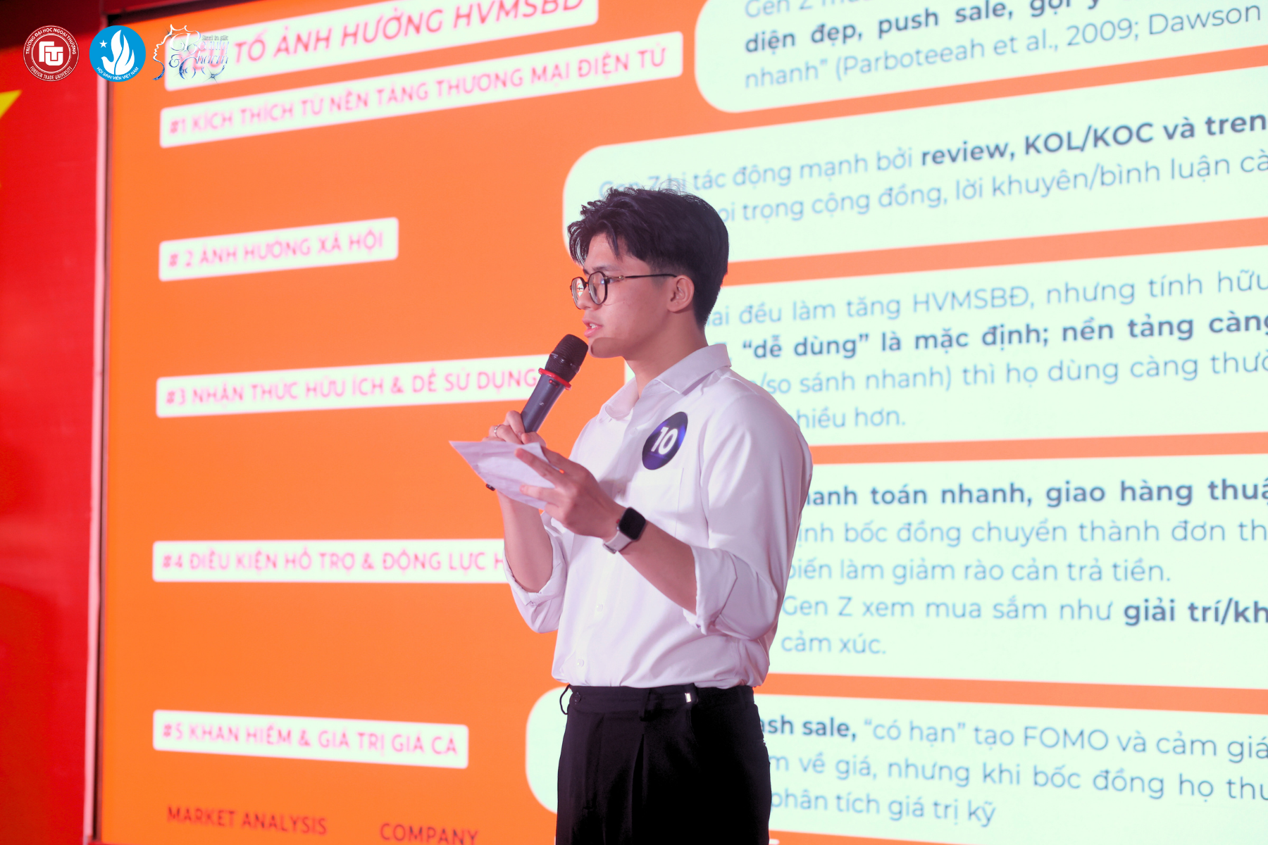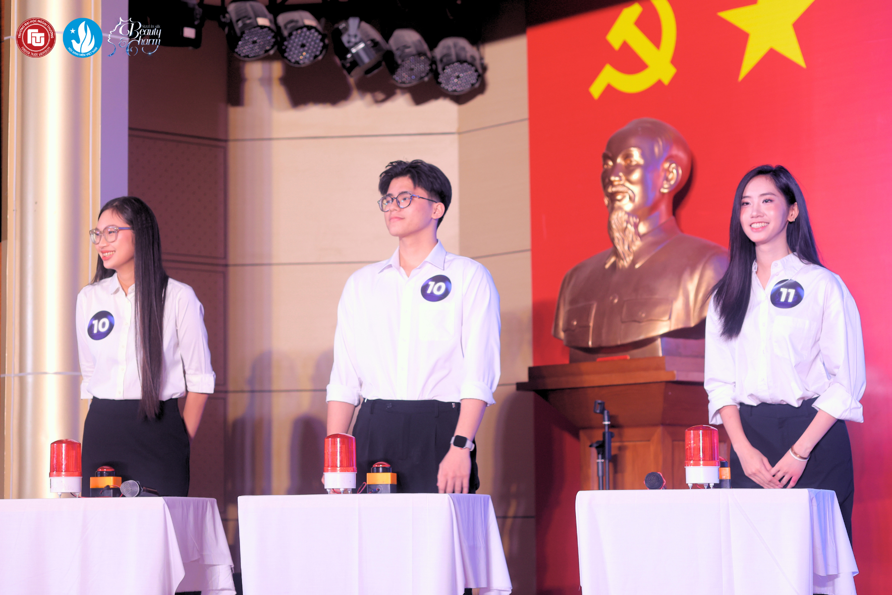 Diễn ra ngày 30/12/2025 tại Hội trường D201, vòng thi Hoa khôi Thương trường thuộc khuôn khổ Duyên dáng Ngoại thương – Beauty & Charm 2025 mang đến một không gian tranh biện học thuật giàu chiều sâu. Top 12 Miss & Manhunt đã bước vào sân chơi trí tuệ, nơi kiến thức, tư duy phản biện và khả năng xử lý vấn đề kinh tế – xã hội trở thành thước đo nổi bật cho bản lĩnh sinh viên Trường Đại học Ngoại thương.