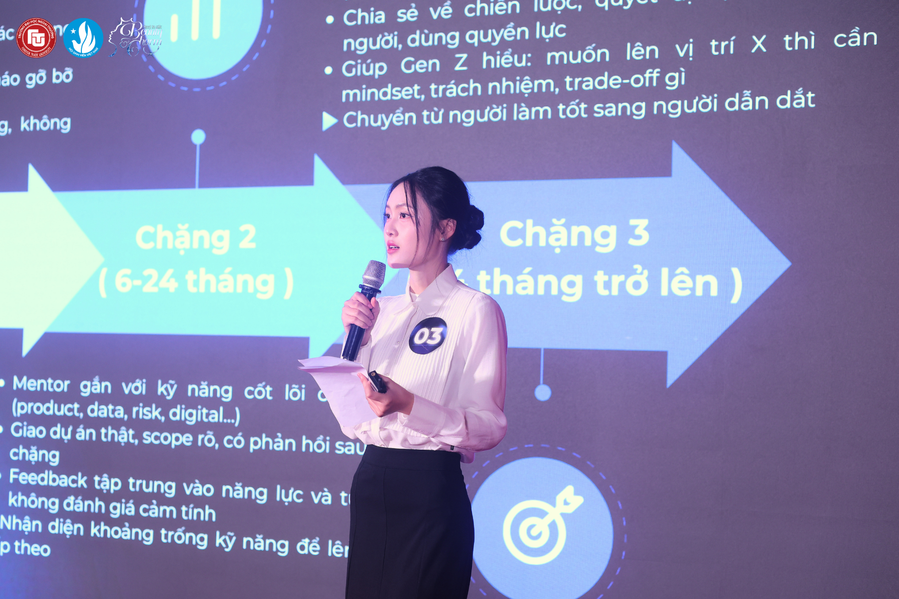 Một số gương mặt để lại dấu ấn qua lập luận chặt chẽ và cách trình bày thuyết phục. Thí sinh SBD 03 Phạm Quỳnh Chi gây chú ý với khả năng liên hệ bối cảnh kinh tế rộng hơn vào bài toán cụ thể, trong khi SBD 10 Trần Công Dũng thể hiện tư duy phản biện rõ ràng và cách tiếp cận có cơ sở.
