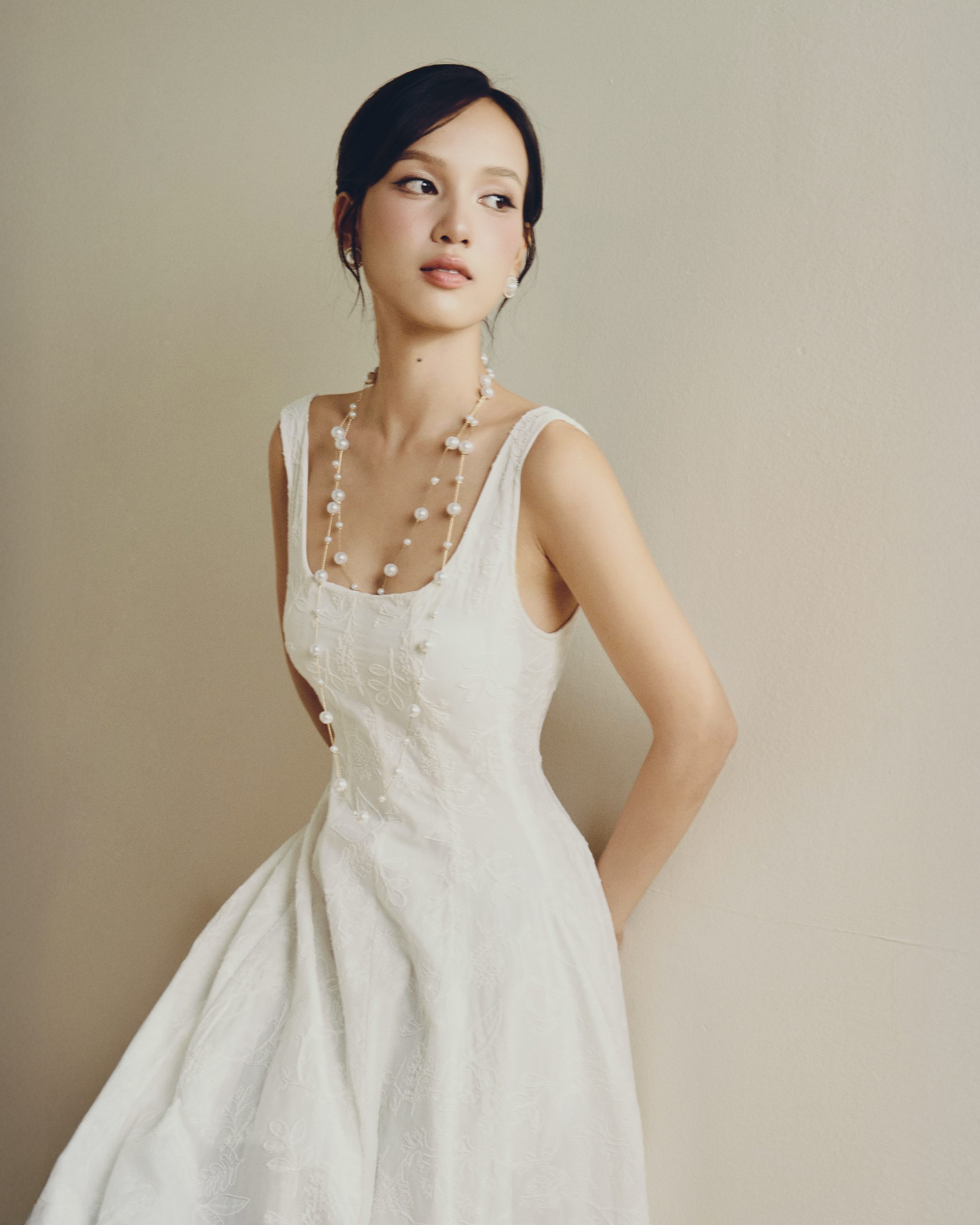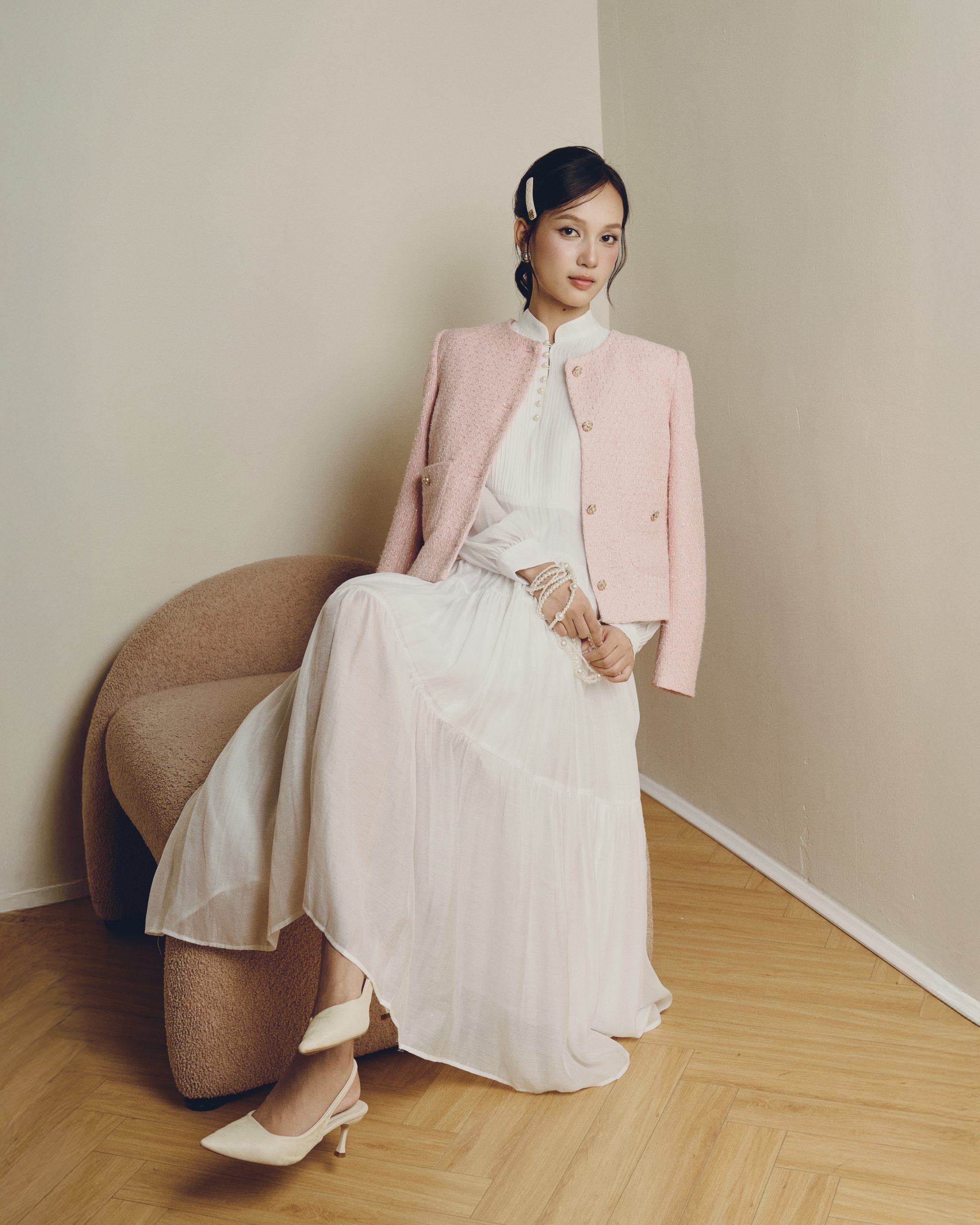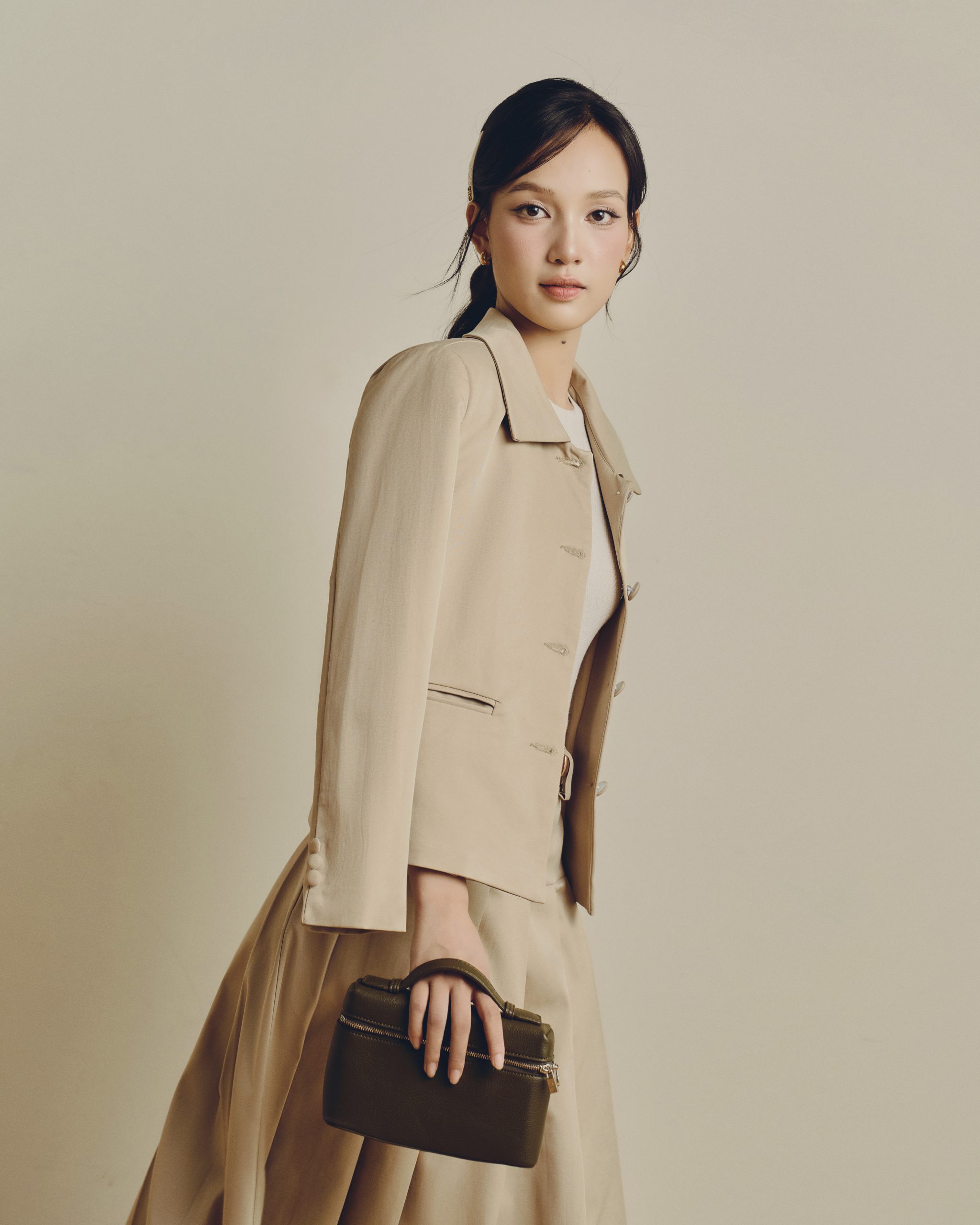 Người mẫu hóa thân trọn vẹn vào hình ảnh “nàng Define Her” thanh lịch, tự tin và đầy duyên dáng. Từng cử chỉ, ánh mắt đều toát lên tinh thần mà bộ sưu tập muốn truyền tải: vẻ đẹp đến từ sự an nhiên, bình lặng nhưng luôn tỏa sáng.