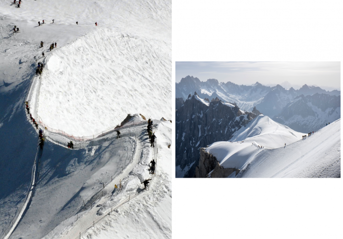 Stepping out of the cable car platform into the thin, crystalline air, the sensation is one of being on “another planet.” The scenery is beyond epic: the highest peaks of the Alps surround the area, with the snow-covered Mont Blanc towering over the entire massif. The panoramic view of this pristine, vast landscape is a powerful emotional trigger, inspiring a sense of awe that is as “breathtaking” as the altitude itself. This initial visual shock sets the stage, transforming the day from a sporting challenge into a meditative journey into the forces of nature.