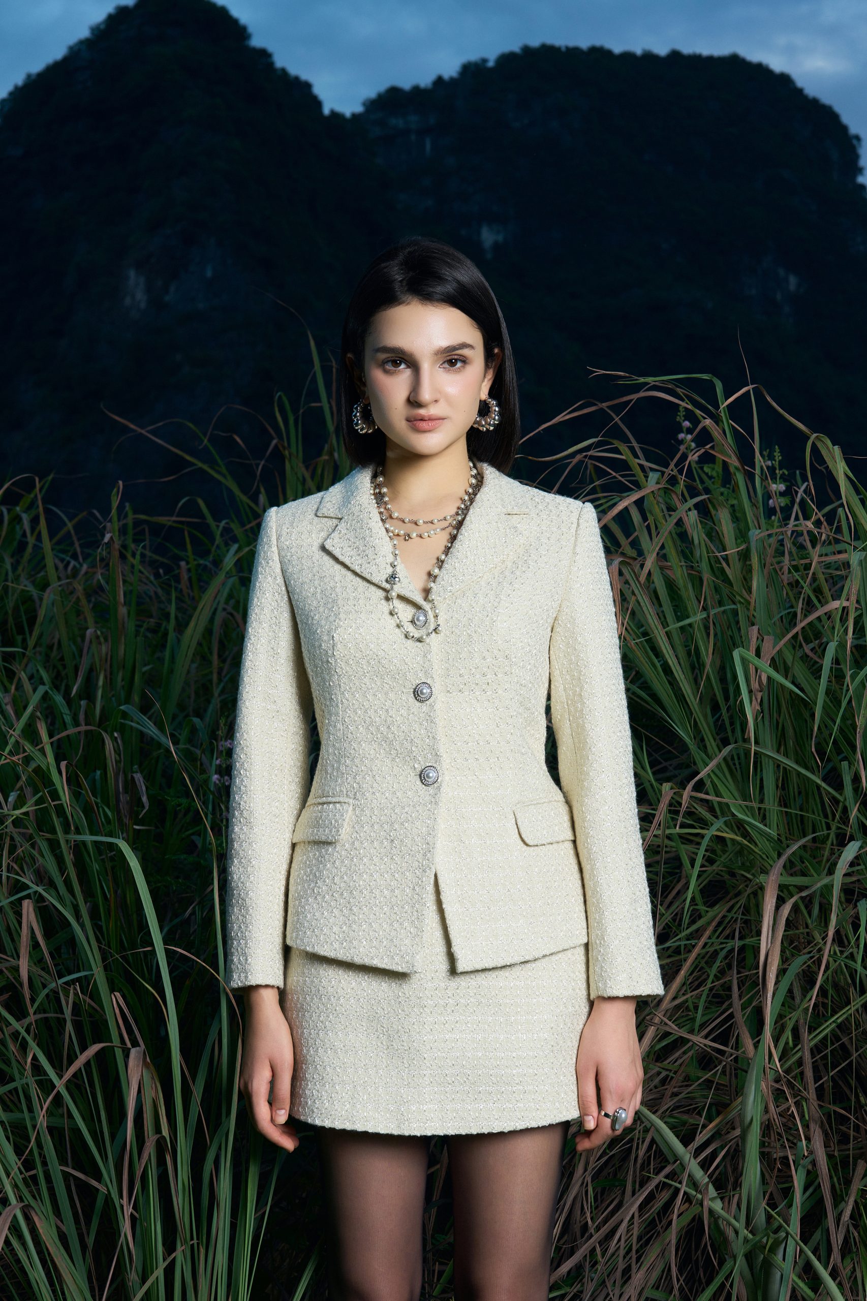 Giữa những vách đá vôi trầm mặc và mặt hồ tĩnh lặng, cái đẹp tìm thấy chỗ đứng riêng biệt. Bộ sưu tập “Di Sản” (The Heritage) của Merne đưa người xem trở về miền ký ức qua những thước vải kinh điển. Tweed, Dạ, Khaki và Lụa, bốn chất liệu, bốn mảnh ghép cùng kể lại hành trình từ quá khứ đến hiện tại. Tại đây, thời trang bỏ qua sự ồn ào của xu hướng để tập trung vào giá trị cốt lõi: chất cảm vật liệu và phom dáng chuẩn mực.