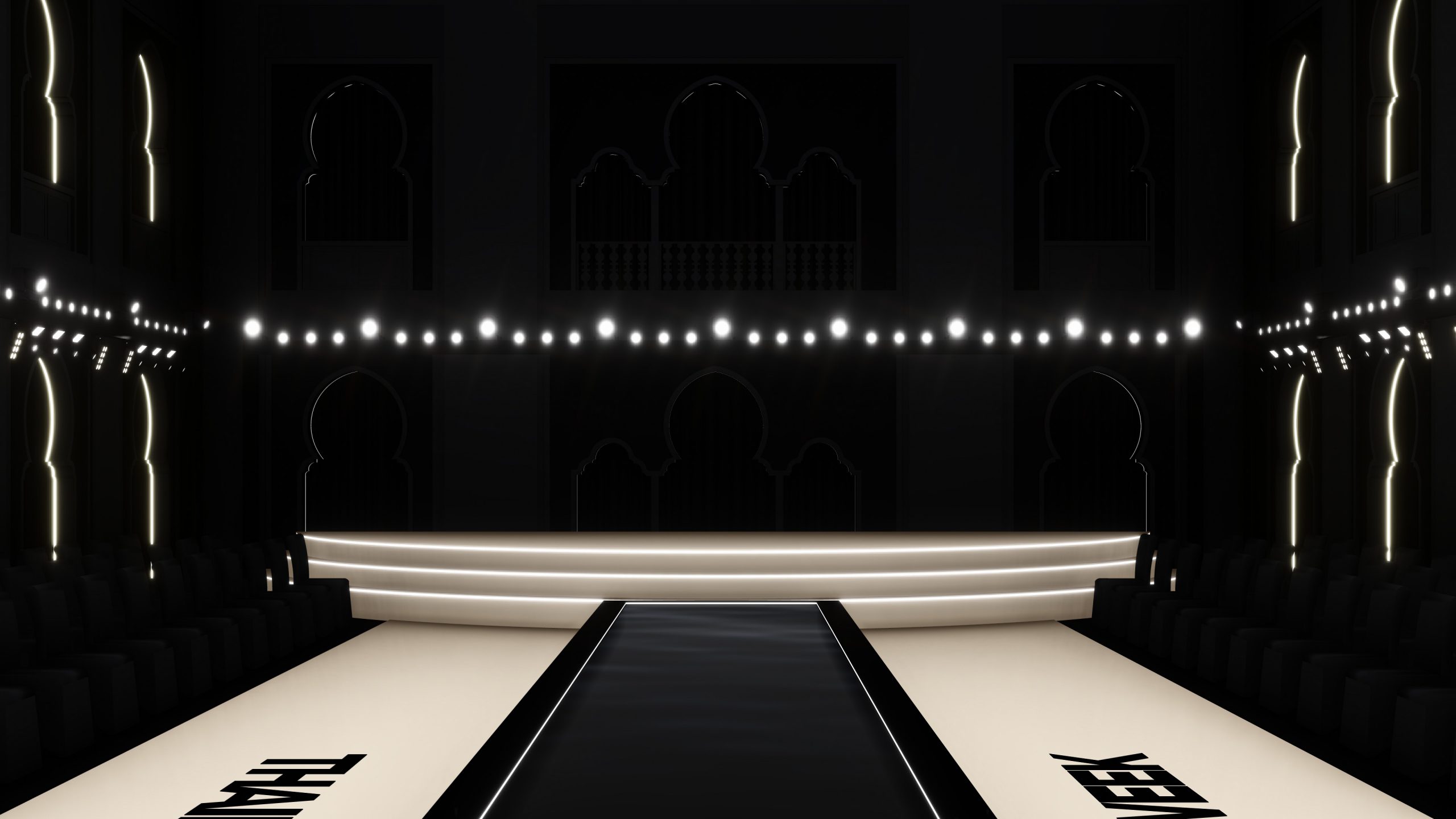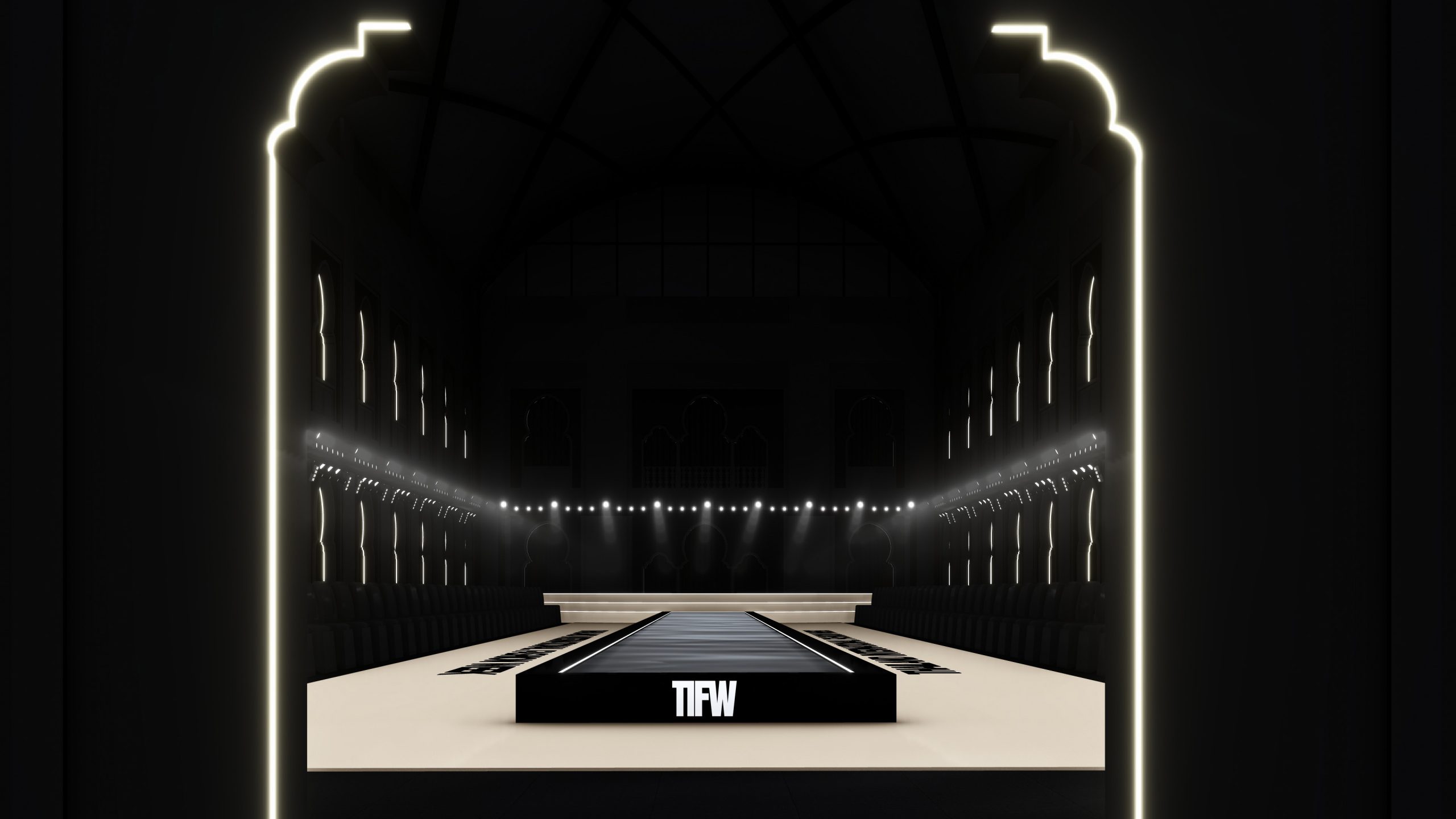 Những hình ảnh đầu tiên về sân khấu TIFW Dubai 2026 vừa được hé lộ, gây ấn tượng mạnh mẽ với giới mộ điệu toàn cầu. Lấy cảm hứng từ kiến trúc Hồi giáo đương đại, không gian runway được thiết kế với tông màu đen, kem chủ đạo, tạo nên sự đối lập tinh tế giữa ánh sáng và bóng tối. Hai bên sàn diễn là hàng ghế được bố trí khoa học, đảm bảo góc nhìn hoàn hảo cho từng khán giả.