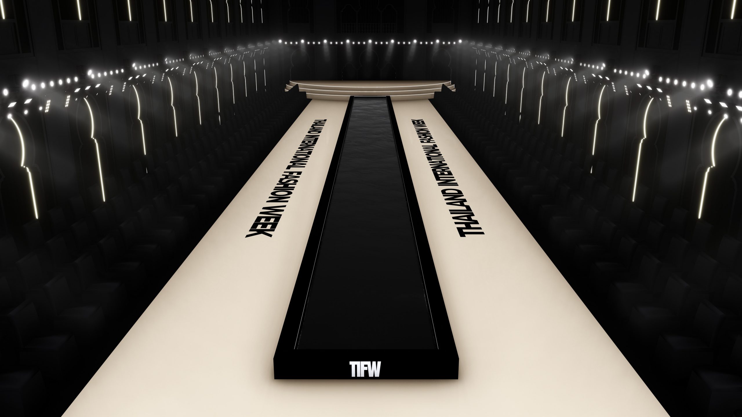 Dọc theo sàn catwalk, dòng chữ “THAILAND INTERNATIONAL FASHION WEEK” nổi bật không chỉ là dấu ấn thương hiệu, mà còn là tuyên ngôn của một hành trình vượt biên giới. Ánh sáng được thiết kế bằng hệ thống đèn LED cao cấp, mô phỏng ánh sáng của sa mạc Dubai về đêm, phản chiếu sự lấp lánh và quyền lực của thời trang đương đại.
