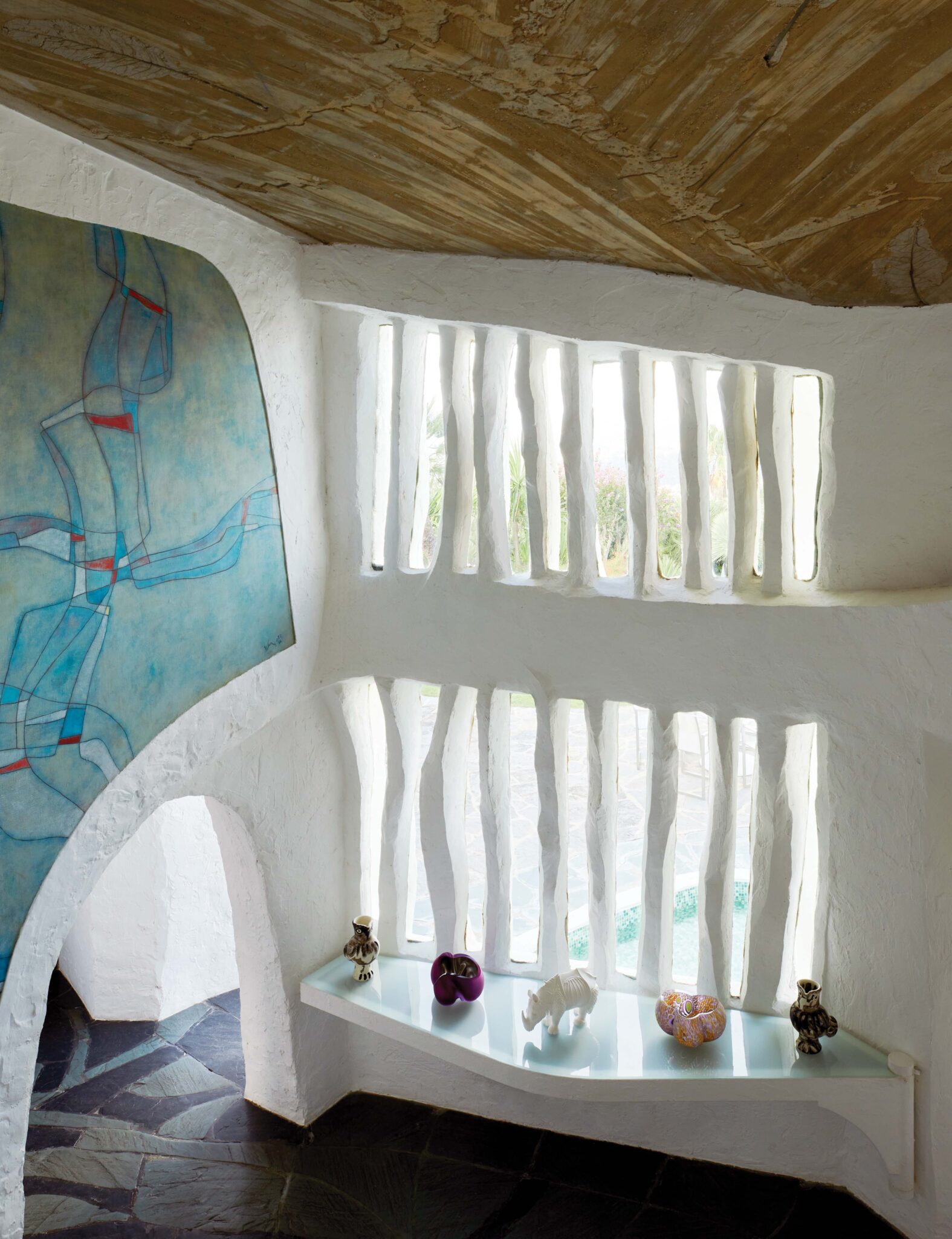 Ánh sáng tự nhiên, len lỏi qua những khung cửa không theo quy tắc, đổ bóng lên tường như những nét cọ ngẫu hứng, tạo nên một vũ điệu thị giác không bao giờ lặp lại. Mỗi khoảnh khắc trong ngôi nhà đều khác biệt, như nhịp thở của chính đại dương cách đó không xa. Những chi tiết nội thất độc bản, từ đèn của Diego Giacometti, tranh ghép (collage) của Robert Courtright, đến bức bích họa của Gustave Singier ở phòng khách, đều biến mỗi góc nhỏ của ngôi nhà thành một triển lãm nghệ thuật sống động.